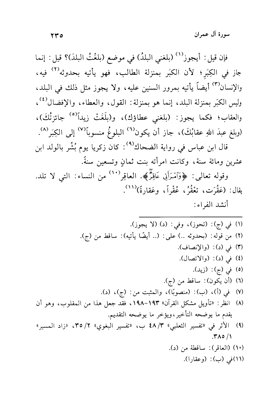 (¬8) انظر: "تأويل مشكل القرآن" 193 - 198، فقد جعل هذا من المقلوب، وهو أن يقدم ما يوضحه التأخير، ويؤخر ما يوضحه التقديم.