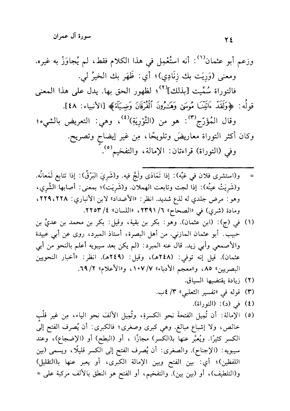 وفي (التوراة) قراءتان: الإمالة، والتفخيم (¬5).
