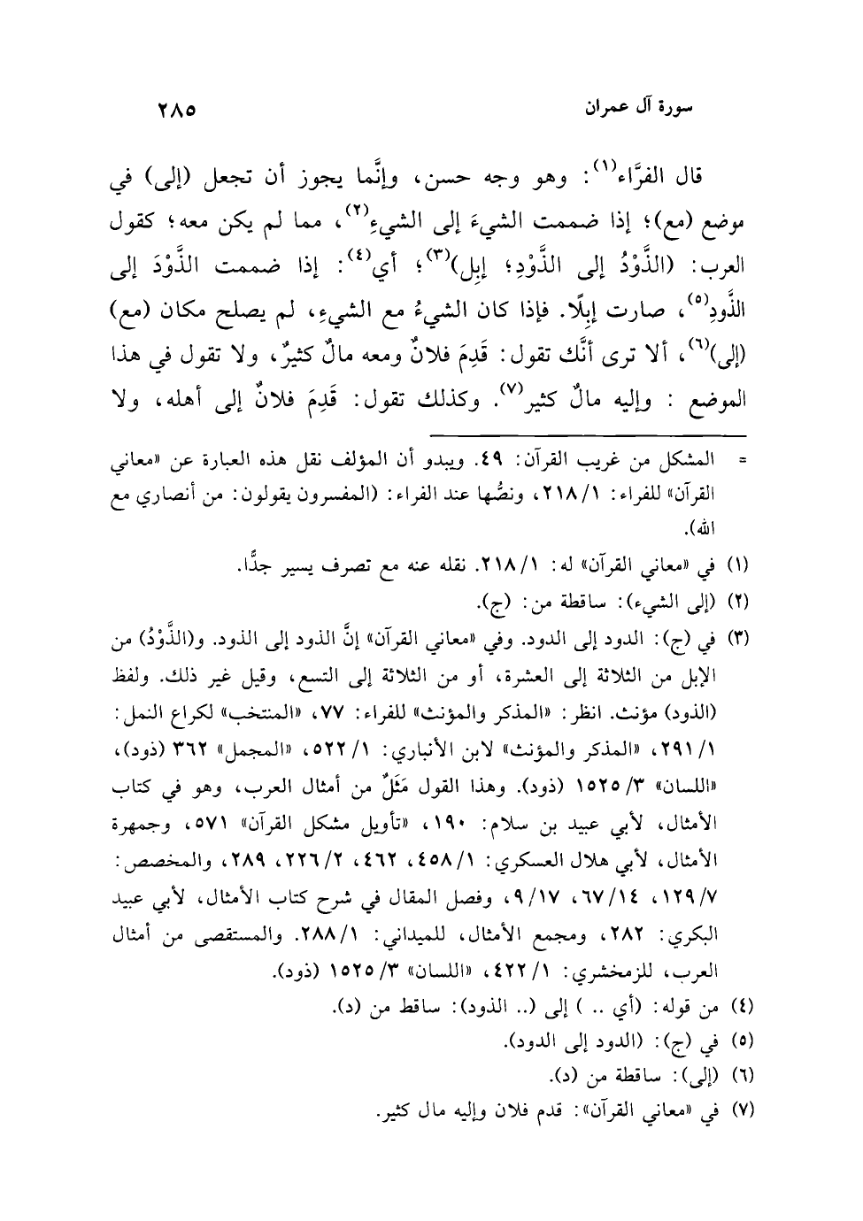 (¬3) في (ج): الدود إلى الدود. وفي "معاني القرآن" إنَّ الذود إلى الذود. و (الذَّوْدُ) من الإبل من الثلاثة إلى العشرة، أو من الثلاثة إلى التسع، وقيل غير ذلك. ولفظ (الذود) مؤنث. انظر: "المذكر والمؤنث" للفراء: 77، "المنتخب" لكراع النمل: 1/ 291، "المذكر والمؤنث" لابن الأنباري: 1/ 522، "المجمل" 362 (ذود)، "اللسان" 3/ 1525 (ذود). وهذا القول مَثَلٌ من أمثال العرب، وهو في كتاب الأمثال، لأبي عبيد بن سلام: 190، "تأويل مشكل القرآن" 571، وجمهرة الأمثال، لأبي هلال العسكري: 1/ 458، 462، 2/ 226، 289، والمخصص: 7/ 129، 14/ 67، 17/ 9، وفصل المقال في شرح كتاب الأمثال، لأبي عبيد البكري: 282، ومجمع الأمثال، للميداني: 1/ 288. والمستقصى من أمثال العرب، للزمخشري: 1/ 422، "اللسان" 3/ 1525 (ذود).