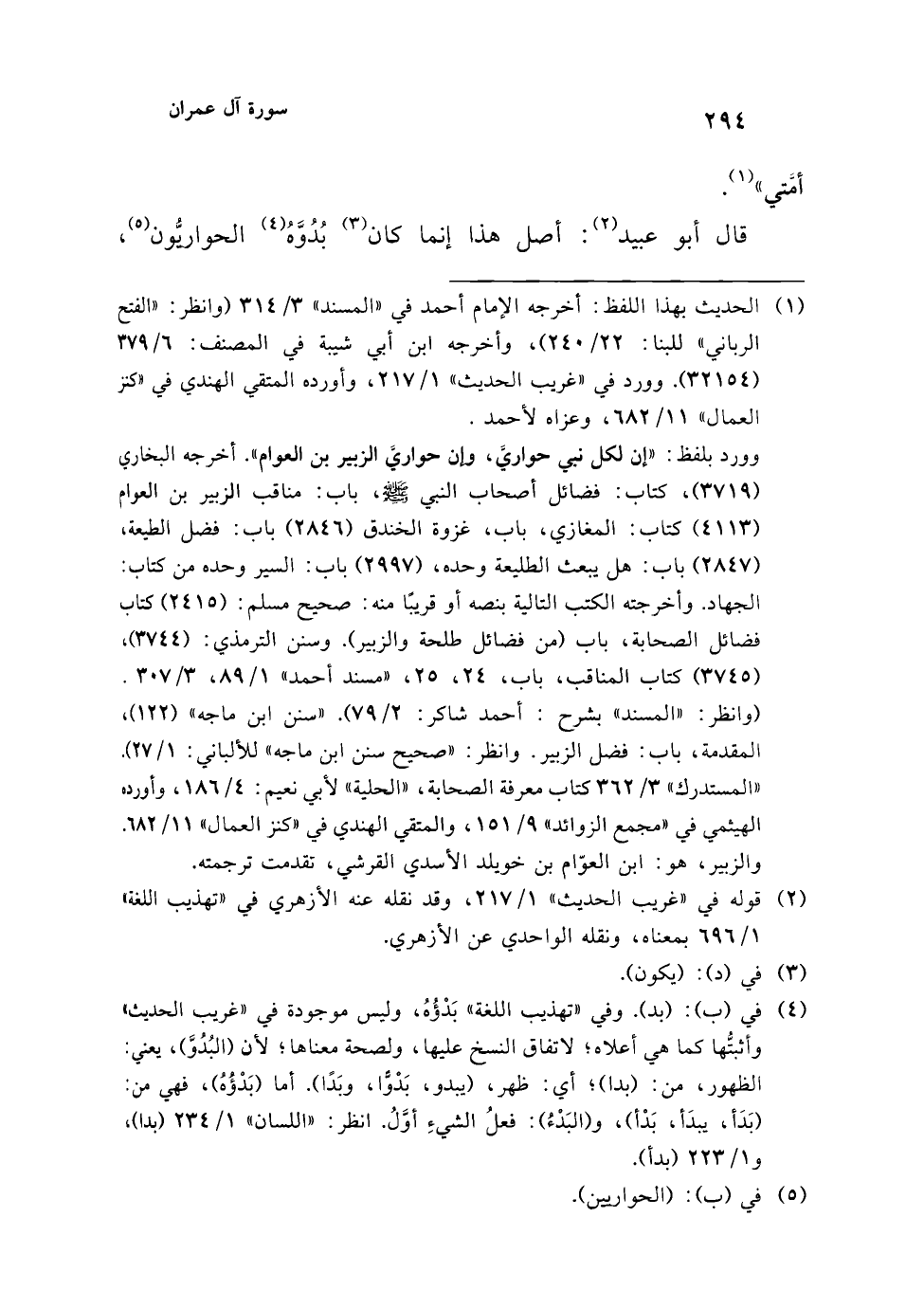 قال أبو عبيد (¬2): أصل هذا إنما كان (¬3) بُدُوَّهُ (¬4) الحواريُّون (¬5)،