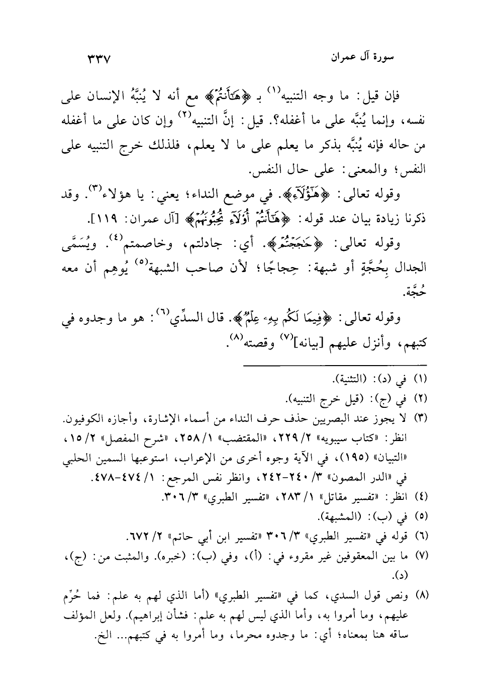 (¬8) ونص قول السدي، كما في "تفسير الطبري" (أما الذي لهم به علم: فما حُرِّم عليهم، وما أمروا به، وأما الذي ليس لهم به علم: فشأن إبراهيم). ولعل المؤلف ساقه هنا بمعناه؛ أي: ما وجدوه محرما، وما أمروا له في كتبهم ... الخ.