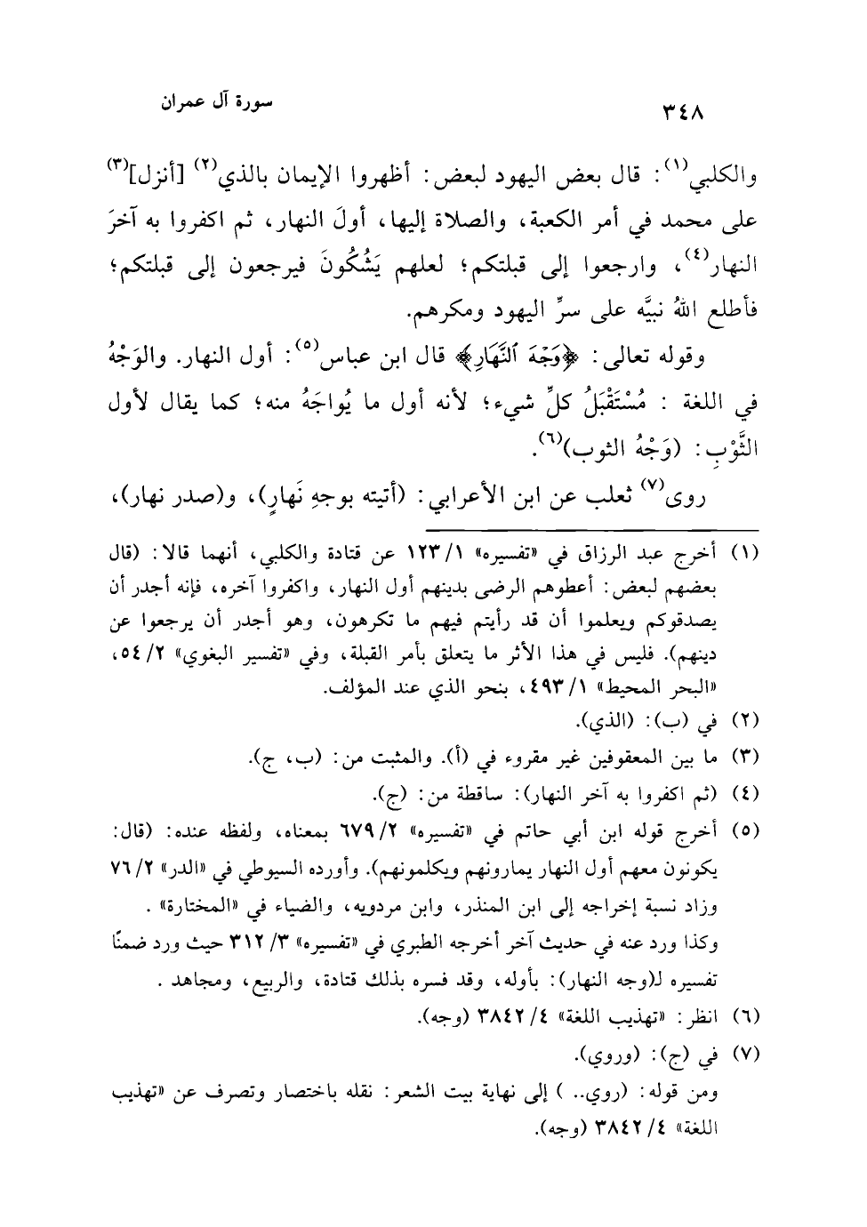 وكذا ورد عنه في حديث آخر أخرجه الطبري في "تفسيره" 3/ 312 حيث ورد ضمنًا تفسيره لـ (وجه النهار): بأوله، وقد فسره بذلك قتادة، والربيع، ومجاهد.