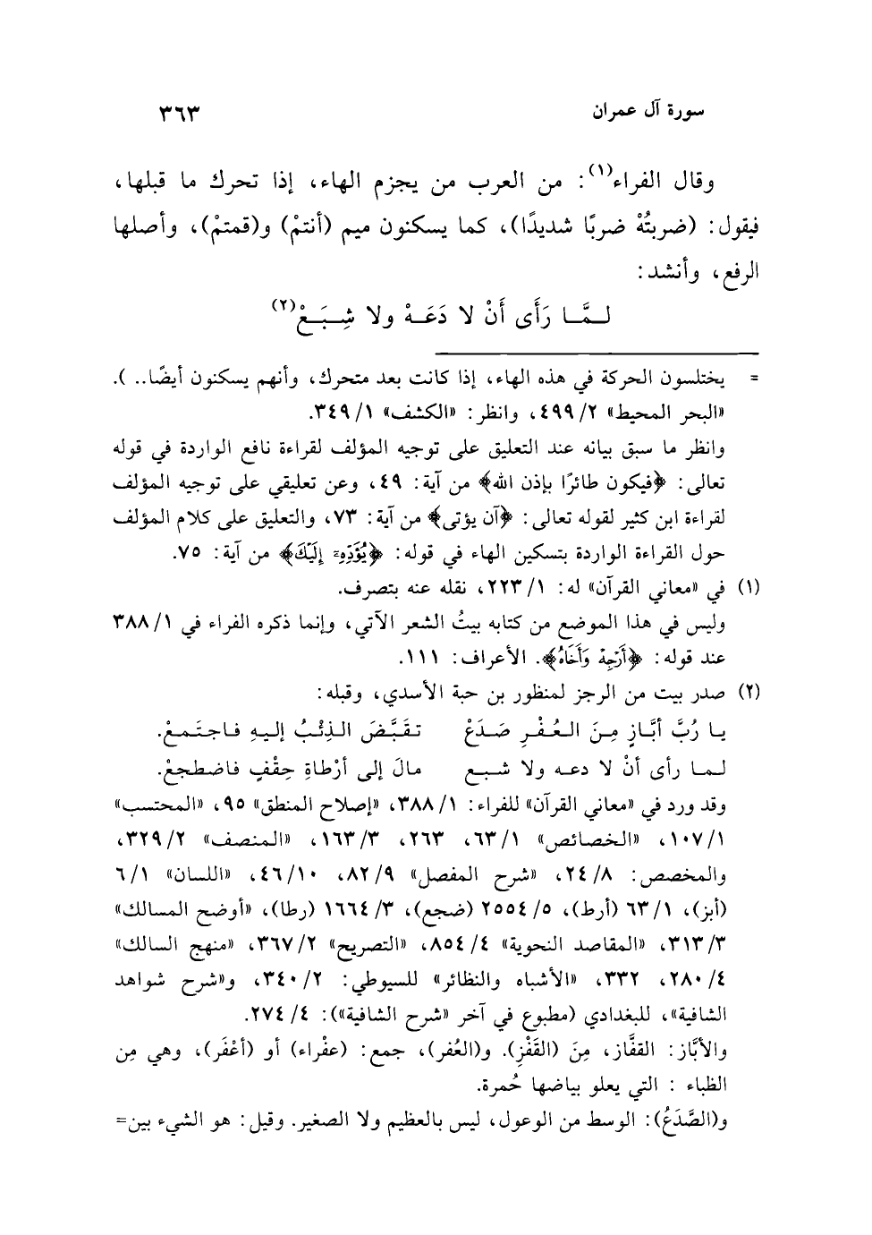 وانظر ما سبق بيانه عند التعليق على توجيه المؤلف لقراءة نافع الواردة في قوله تعالى: {فيكون طائرًا بإذن الله} من آية: 49، وعن تعليقي على توجيه المؤلف لقراءة ابن كثير لقوله تعالى: {آن يؤتى} من آية: 73، والتعليق على كلام المؤلف حول القراءة الواردة بتسكين الهاء في قوله: {يُؤَدِّهِ إِلَيْكَ} من آية: 75.