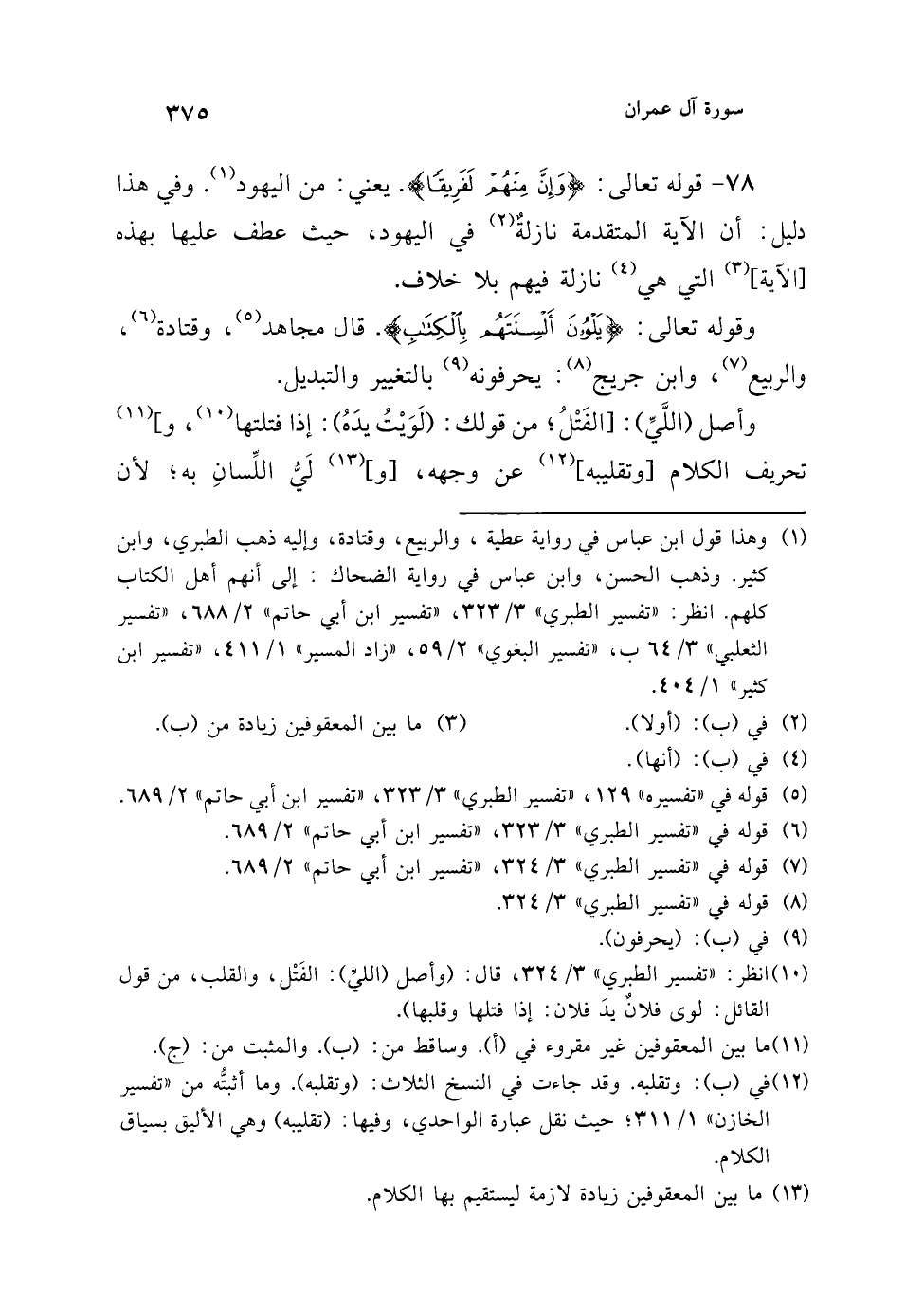 (¬10) انظر: "تفسير الطبري" 3/ 324، قال: (وأصل (الليِّ): الفَتْل، والقلب، من قول القائل: لوى فلانٌ يدَ فلان: إذا فتلها وقلبها).
