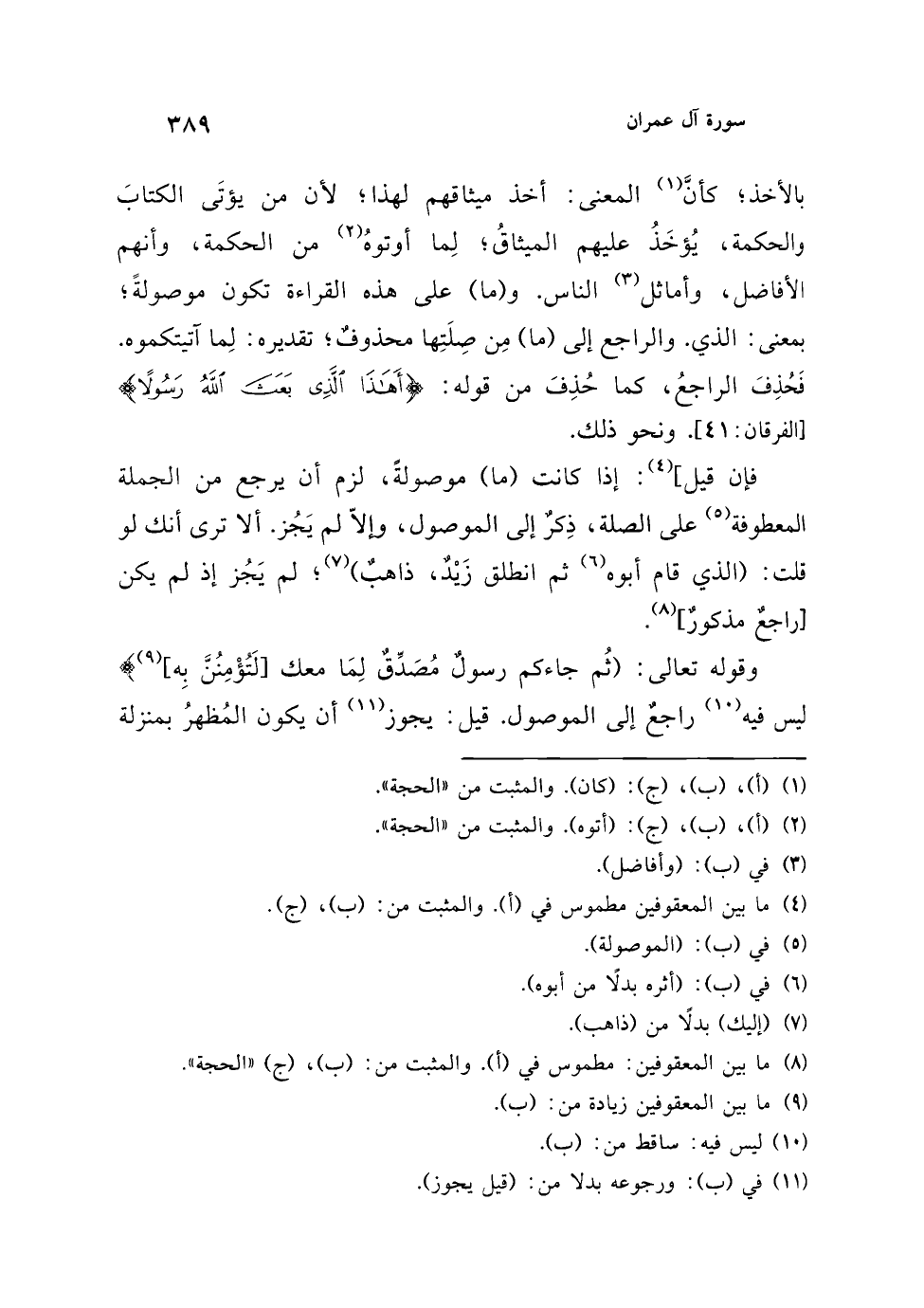 وقوله تعالى: {ثُمَّ جَاءَكُمْ رَسُولٌ مُصَدِّقٌ لِمَا مَعَكُمْ [لَتُؤْمِنُنَّ بِهِ] (¬9)} ليس فيه (¬10) راجعٌ إلى الموصول. قيل: يجوز (¬11) أن يكون المُظهرُ بمنزلة