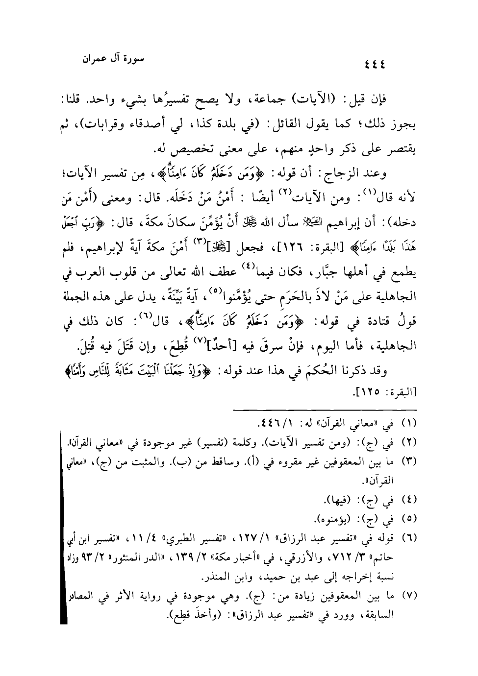 (¬6) قوله في "تفسير عبد الرزاق" 1/ 127، "تفسير الطبري" 4/ 11، "تفسير ابن أبي حاتم" 3/ 712، والأزرقي، في "أخبار مكة" 2/ 139، "الدر المنثور" 2/ 93 وزاد نسبة إخراجه إلى عبد بن حميد، وابن المنذر.