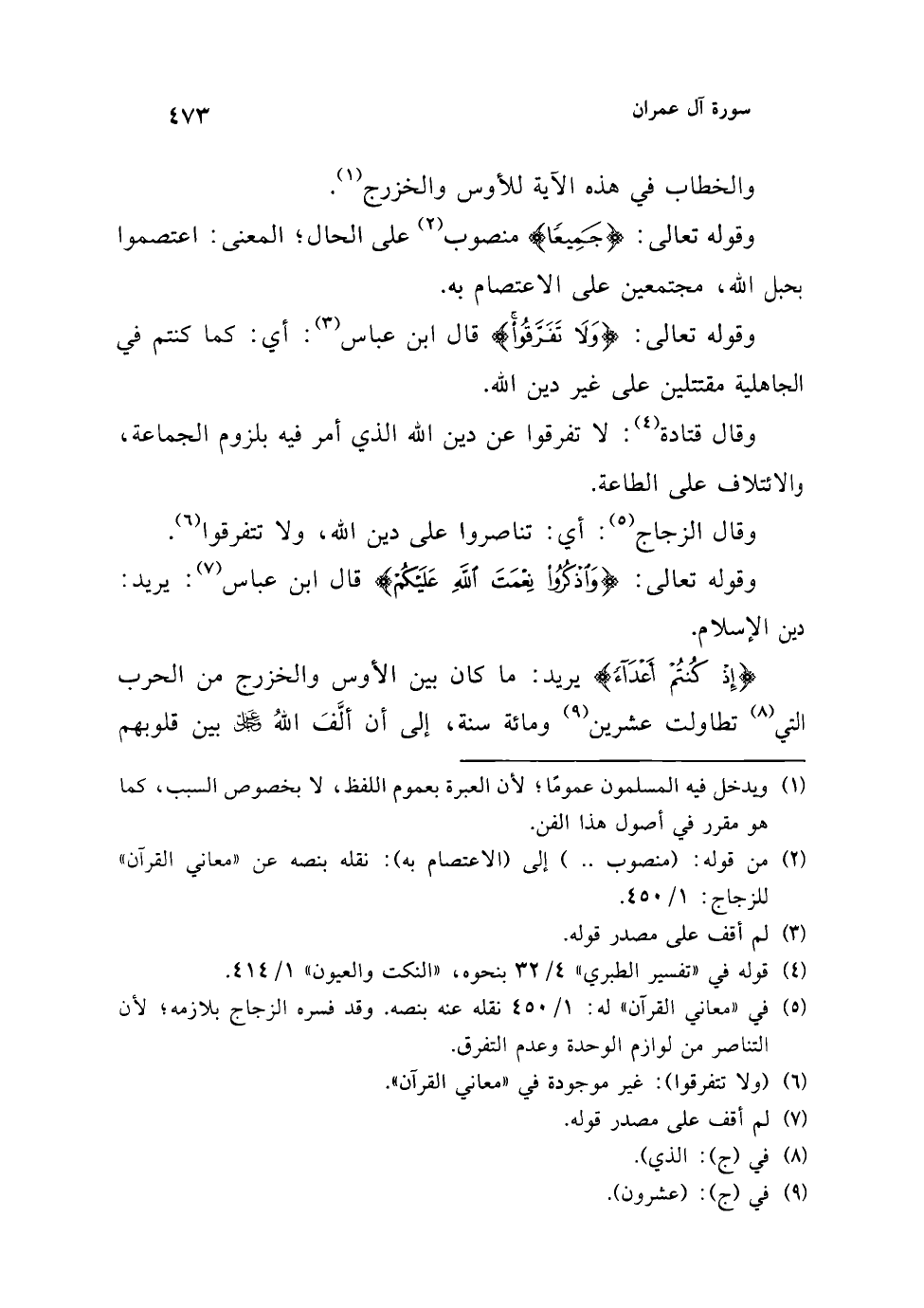 (¬2) من قوله: (منصوب ..) إلى (الاعتصام به): نقله بنصه عن "معاني القرآن" للزجاج: 1/ 450.