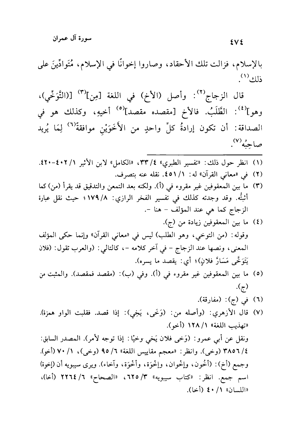 قال الزجاج (¬2): وأصل (الأخ) في اللغة [مِن] (¬3) [(التَّوَخِّي)، وهو] (¬4): الطَّلَبُ. فالأخ [مقصده مقصد] (¬5) أخيهِ، وكذلك هو في الصداقة: أن تكون إرادةُ كلِّ واحدٍ من الأَخَوَيْنِ موافقةً (¬6) لِمَا يُريد صاحِبُه (¬7).
