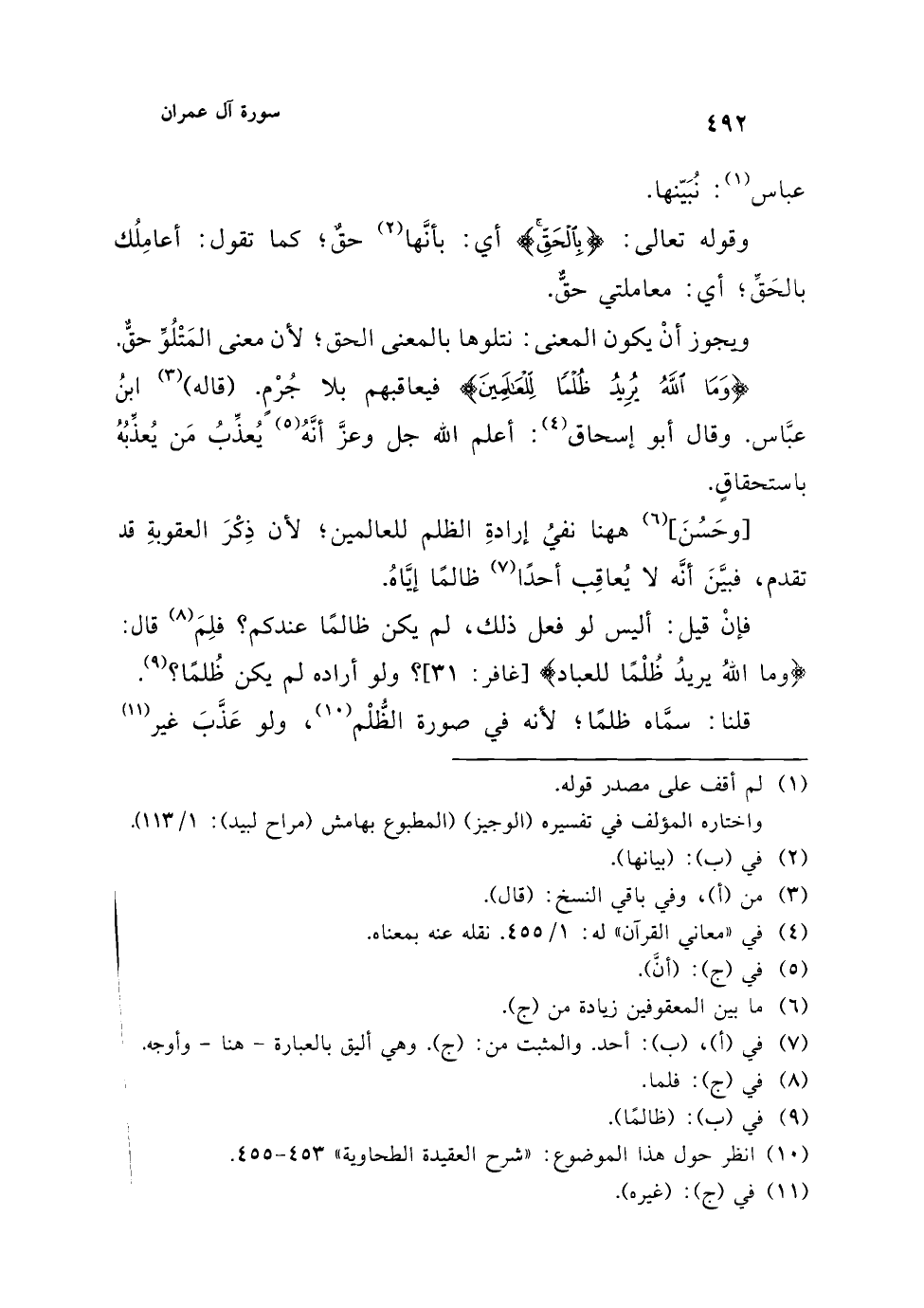 (¬1) لم أقف على مصدر قوله. واختاره المؤلف في تفسيره (الوجيز) (المطبوع بهامش (مراح لبيد): 1/ 113).