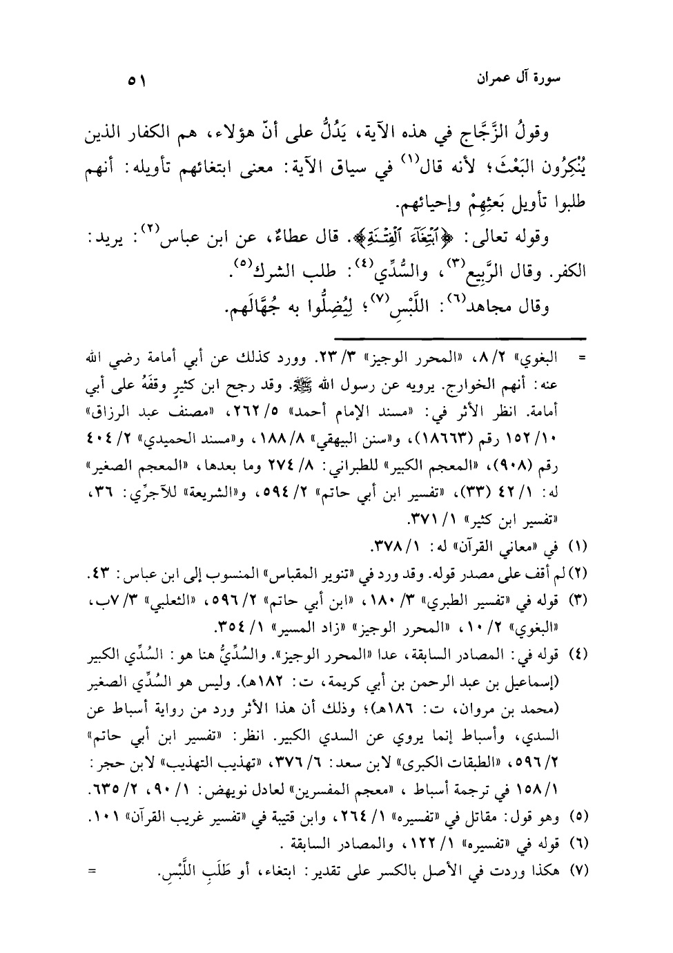 (¬7) هكذا وردت في الأصل بالكسر على تقدير: ابتغاء، أو طَلَبِ اللَّبْسِ. =