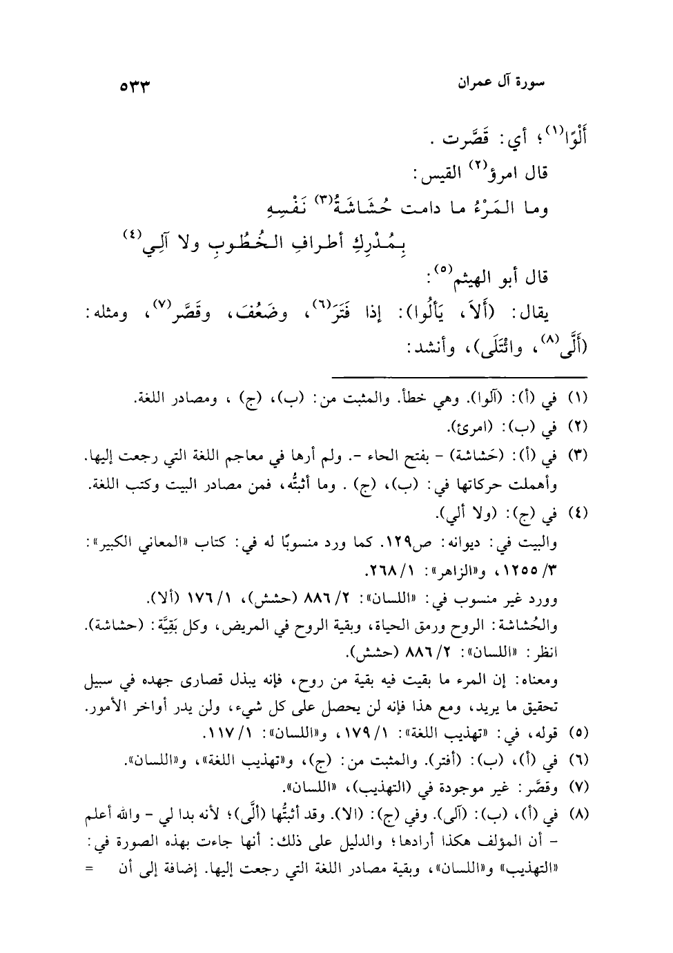 (¬5) قوله، في: "تهذيب اللغة": 1/ 179، و"اللسان": 1/ 117.