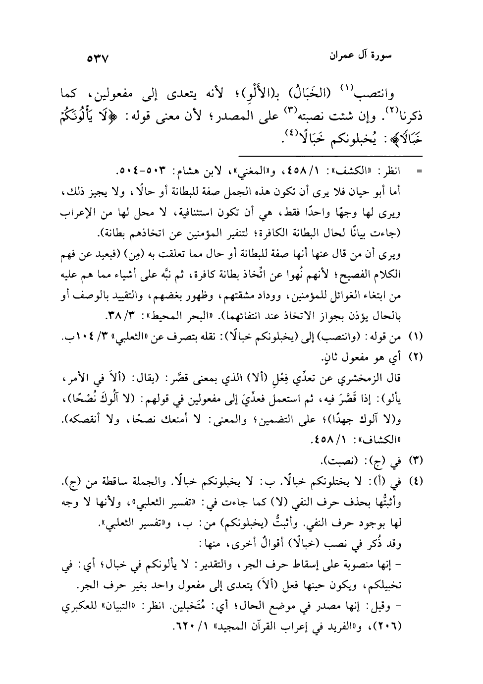 (¬1) من قوله: (وانتصب) إلى (يخبلونكم خبالًا): نقله بتصرف عن "الثعلبي" 3/ 104 ب.