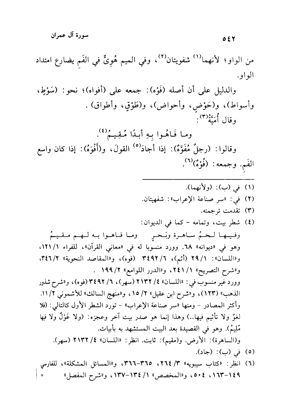 وما فَاهُوا بِهِ أبدًا مُقِيمُ (¬4).