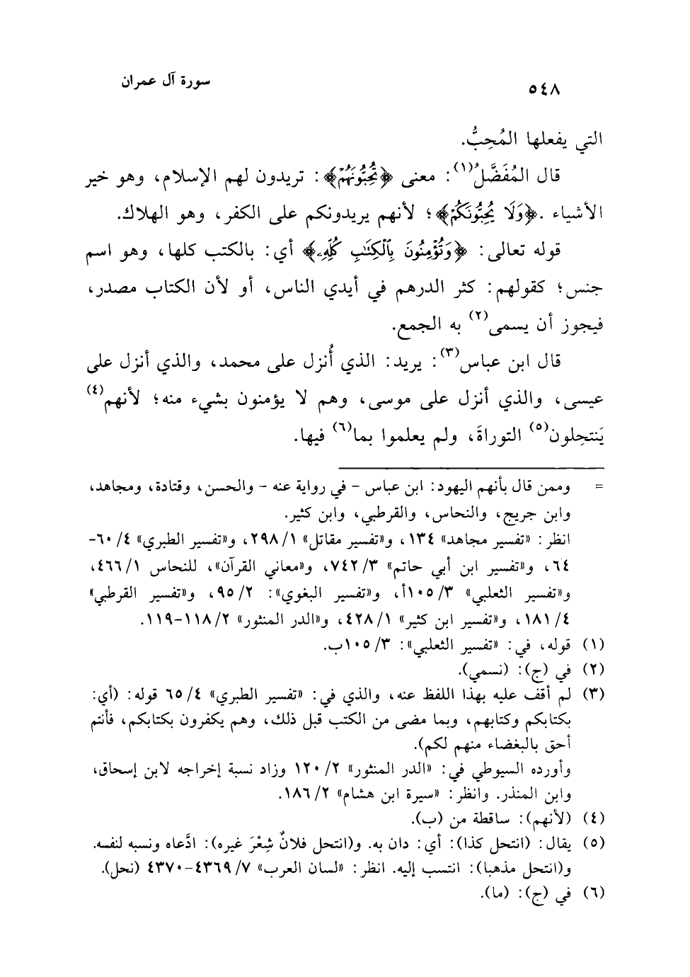 (¬3) لم أقف عليه بهذا اللفظ عنه، والذي في: "تفسير الطبري" 4/ 65 قوله: (أي: بكتابكم وكتابهم، وبما مضى من الكتب قبل ذلك، وهم يكفرون بكتابكم، فأنتم أحق بالبغضاء منهم لكم).