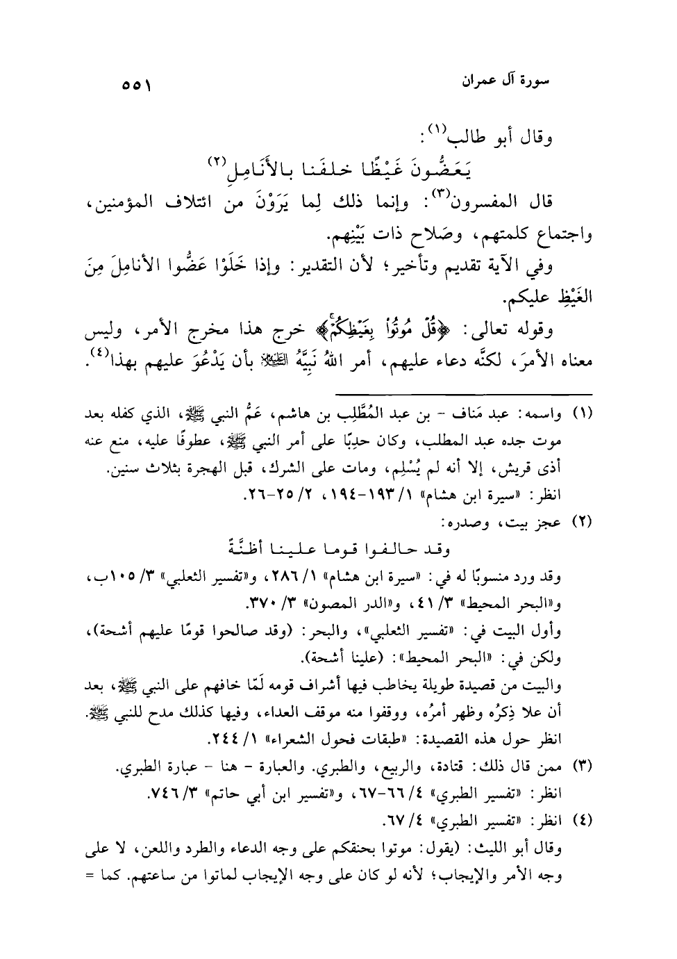 يَعَضُّونَ غَيْظًا خلفَنا بالأَنَامِلِ (¬2)
