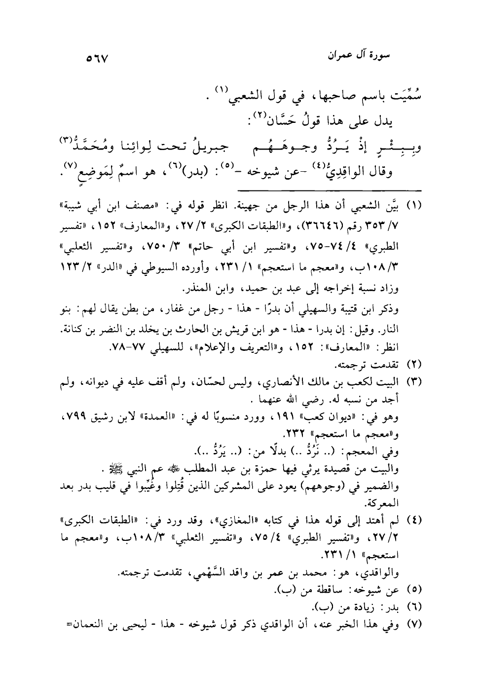 (¬3) البيت لكعب بن مالك الأنصاري، وليس لحسّان، ولم أقف عليه في ديوانه، ولم أجد من نسبه له. رضي الله عنهما.