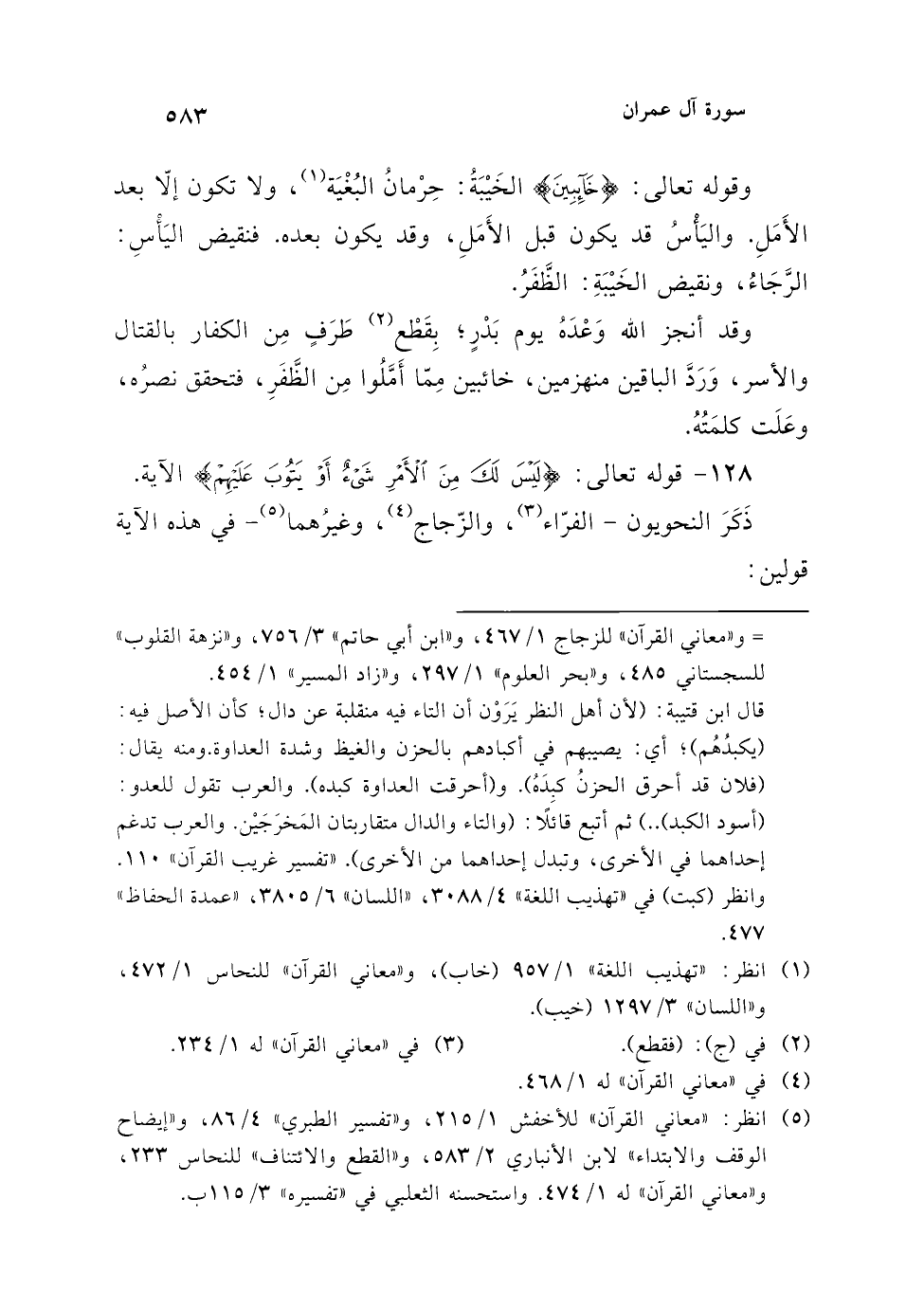 (¬1) انظر: "تهذيب اللغة" 1/ 957 (خاب)، و"معاني القرآن" للنحاس 1/ 472، و"اللسان" 3/ 1297 (خيب).