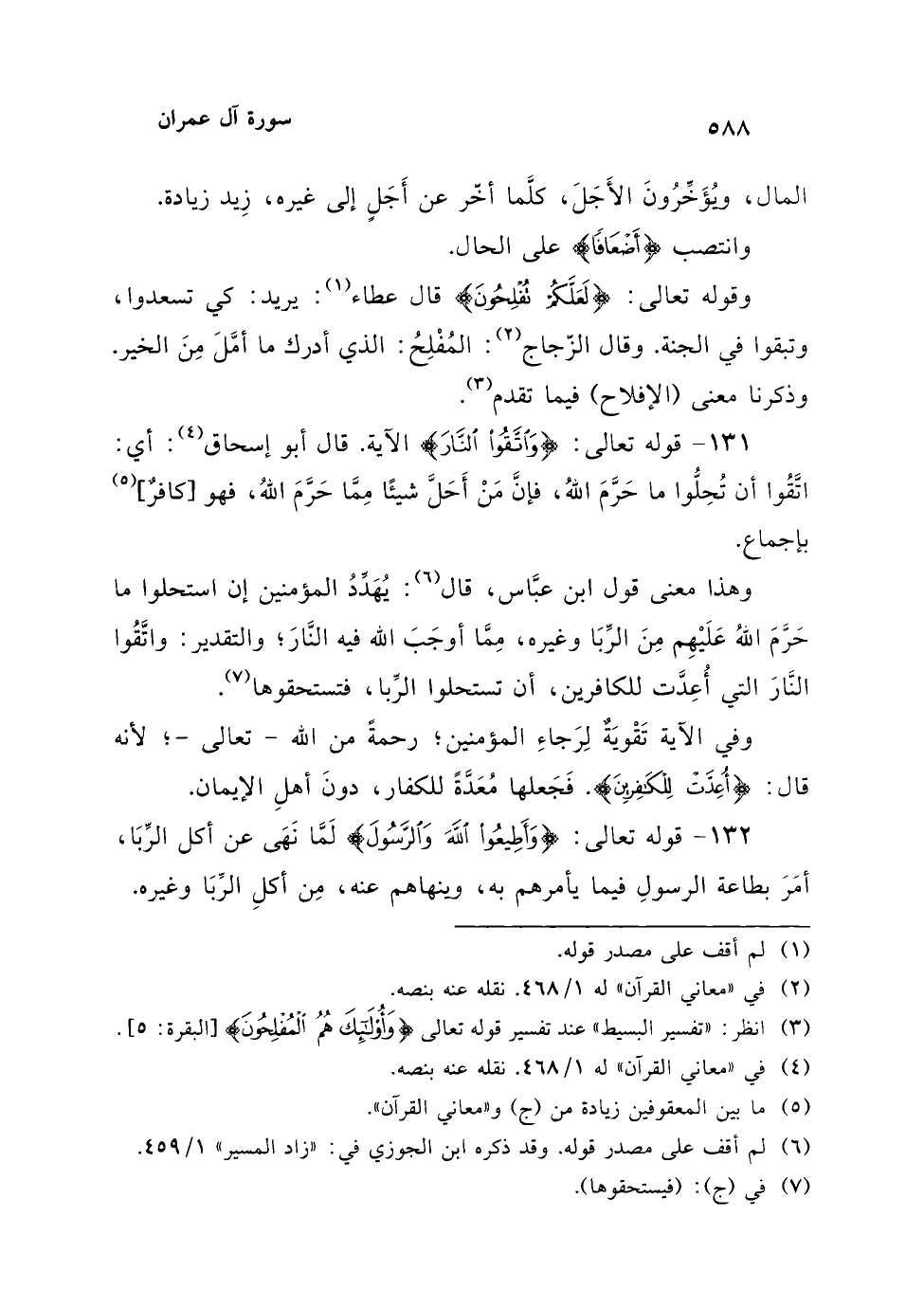 (¬3) انظر: "تفسير البسيط" عند تفسير قوله تعالى {وَأُولَئِكَ هُمُ الْمُفْلِحُونَ} [البقرة: 5].