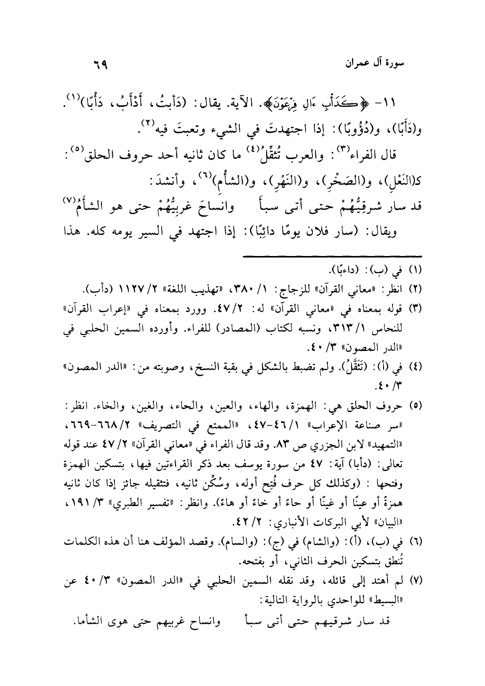 (¬2) انظر: "معاني القرآن" للزجاج: 1/ 380، "تهذيب اللغة" 2/ 1127 (دأب).