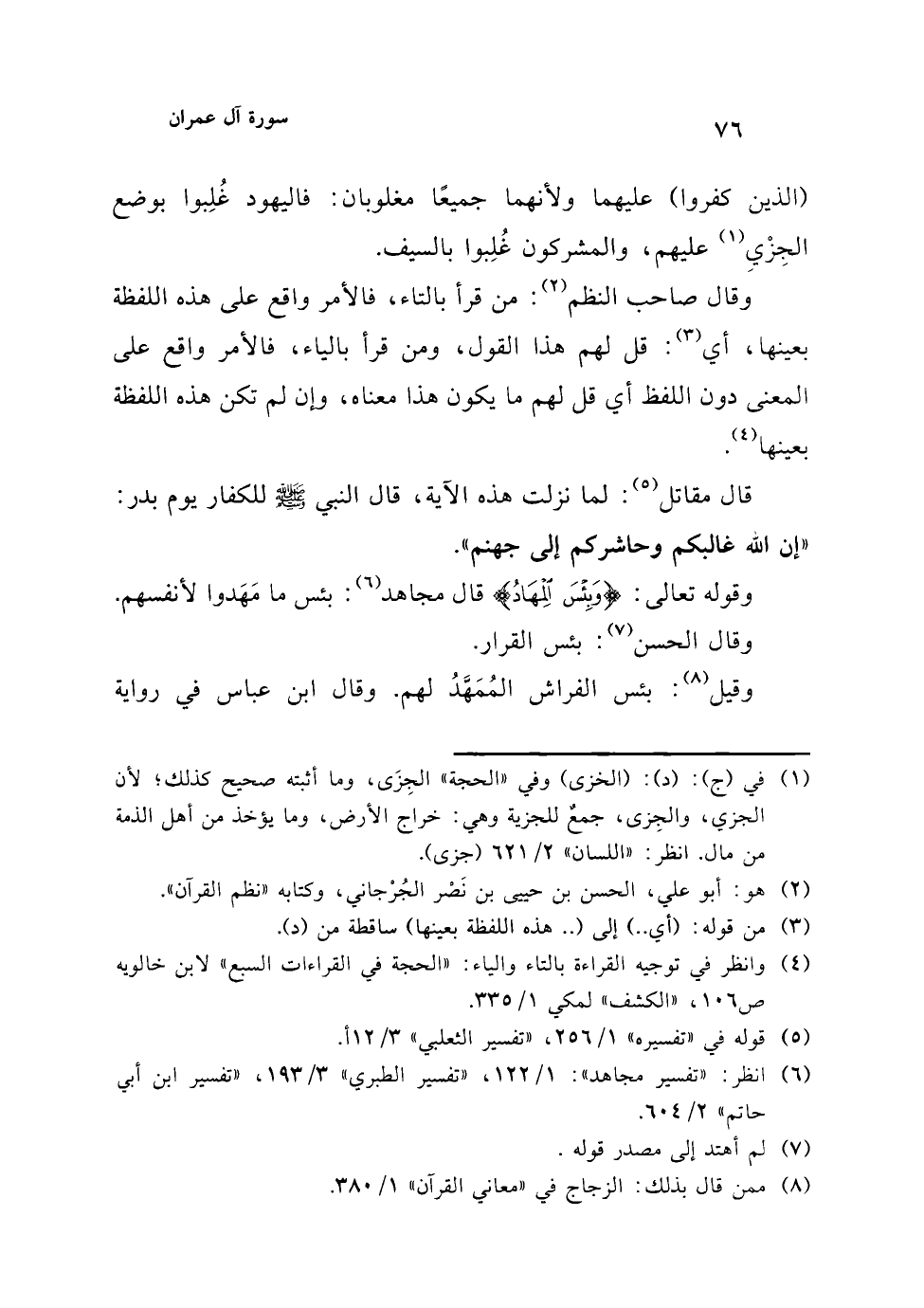 (¬6) انظر: "تفسير مجاهد": 1/ 122، "تفسير الطبري" 3/ 193، "تفسير ابن أبي حاتم" 2/ 604.