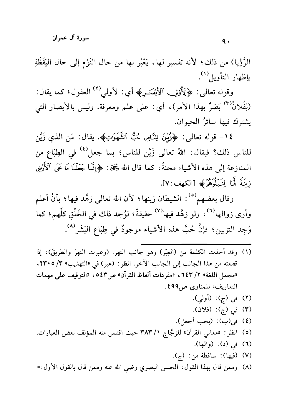 (¬8) وممن قال بهذا القول: الحسن البصري رضي الله عنه وممن قال بالقول الأول:=