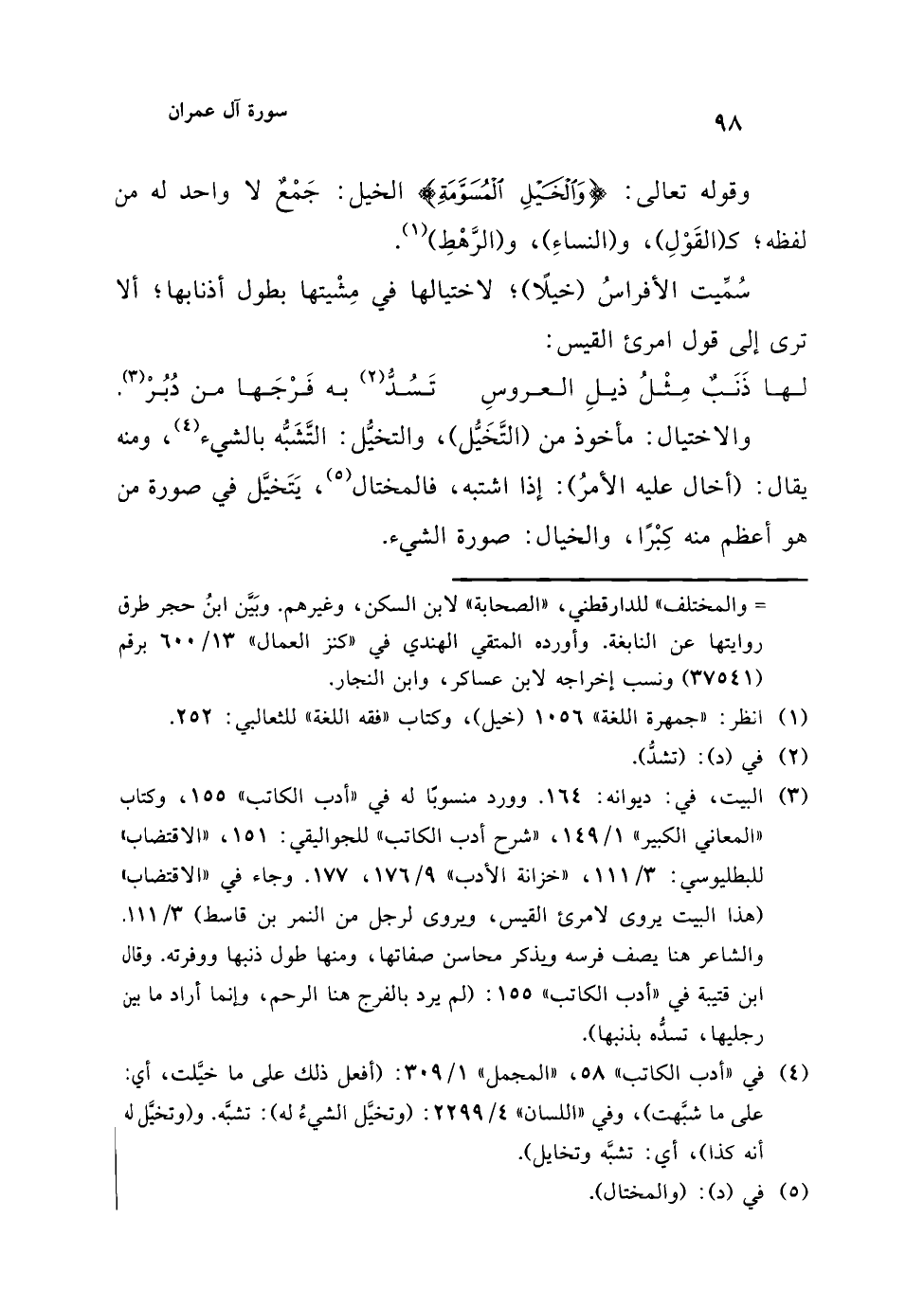 (¬1) انظر: "جمهرة اللغة" 1056 (خيل)، وكتاب "فقه اللغة" للثعالبي: 252.