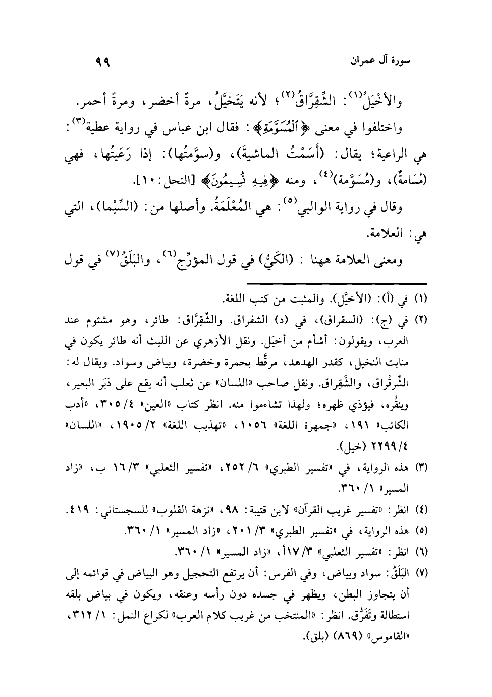 (¬4) انظر: "تفسير غريب القرآن" لابن قتيبة: 98، "نزهة القلوب" للسجستاني: 419.