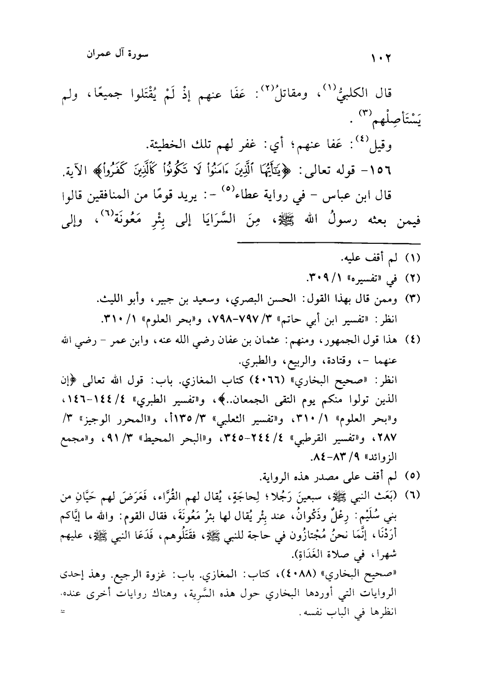 = عطية القولَ بأنها أخُوَّةُ النَسَبِ، قائلا: (لأن قَتْلَى أُحُد كانوا من الأنصار، أكثرهم من الخزرج، ولم يكن فيهم من المهاجرين إلا أربعة). "المحرر" 3/ 389.