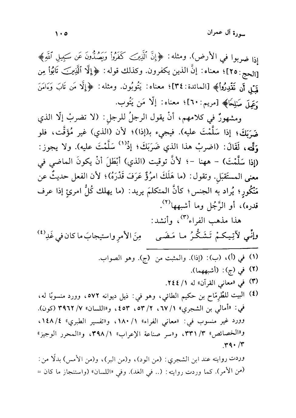 (¬1) انظر هذه المسألة في: "تفسير الطبري" 4/ 147 - 148، و"تهذيب اللغة" 1/ 138 (إذ)، و"اللسان" 1/ 50 (تفسير إذ).