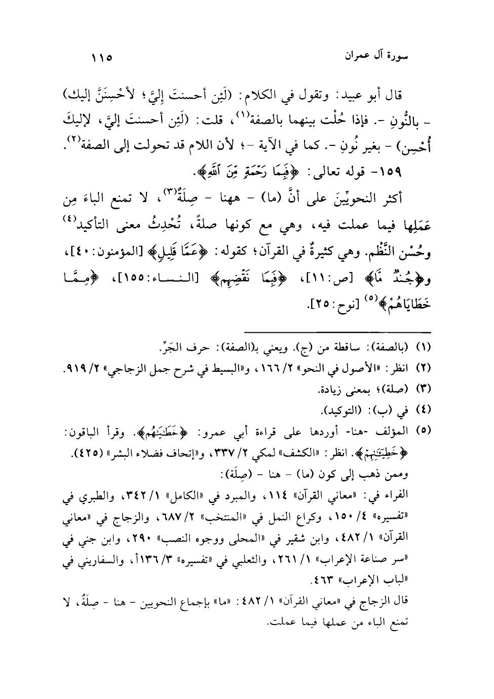 والعرب قد تزيد في الكلام ما يُسْتغنى عنه؛ للتأكيد؛ كقوله: (أنت فعلت كذا وكذا؛ يا هذا!) فأدخلوا (يا هذا)؛ للتأكيد؛ إذ كانت (أنت) دالاًّ على الخطاب. وكذلك قولهم: (لَمَّا أنْ زارني عبد الله، زُرْتُه). معناه: لَمَّا زارني (¬1).