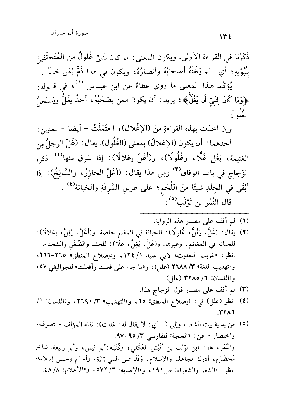 ونَسَبَ (¬1) الإغْلالَ إلى الإصْبَع، كَمَا نَسَبَ (¬2) الآخرُ الخيانةَ إلى اليَدِ، في قوله: