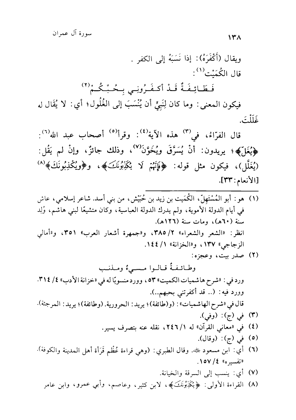 (¬4) قوله في: "صحيح مسلم" رقم (1832) كتاب الإمارة, باب تحريم هدايا العمال, والطبري في "تفسيره" 4/ 159, والبغوي في "تفسيره" 2/ 127, وابن كثير في "تفسيره" 1/ 455.