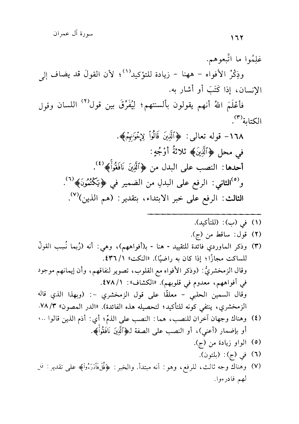 (¬7) قال السمين الحلبي: (و (قد) مرادة؛ أي: (وقد قعدوا). ومجيء الماضي حالًا بالواو و (قد)، أو بأحدهما، أو بدونهما، ثابت من لسان العرب)، ثم ذكر وجهًا آخر لإعراب جملة {وَقَعَدُوا} وهي أنها معطوفة على {قَالُوا}، فتكون جملة اعتراضية بين {قَالُوا} ومعمولها {أَطَاعُونَا}. "الدر المصون" 3/ 480.