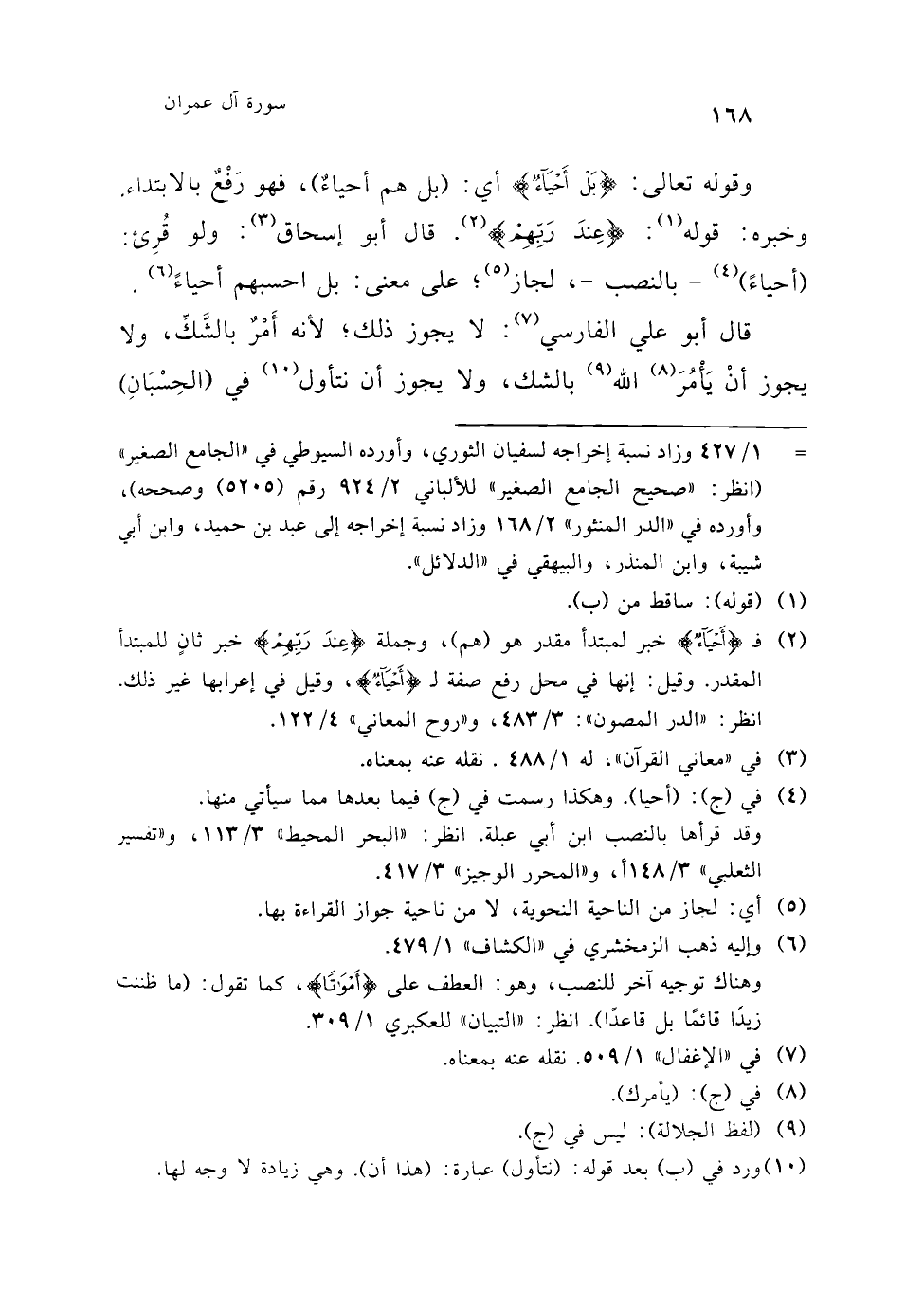 وقوله تعالى: {عِنْدَ رَبِّهِمْ يُرْزَقُونَ} فيه وجهان: أحدهما: بحيث لا يملك لهم أحدٌ نفعًا ولا ضرًّا، إلّا (¬3) الله عز وجل.