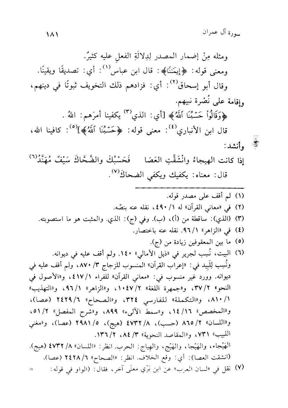 (¬6) هو ابن الأنباري، في "الزاهر" 1/ 100. نقله عنه بالمعنى.