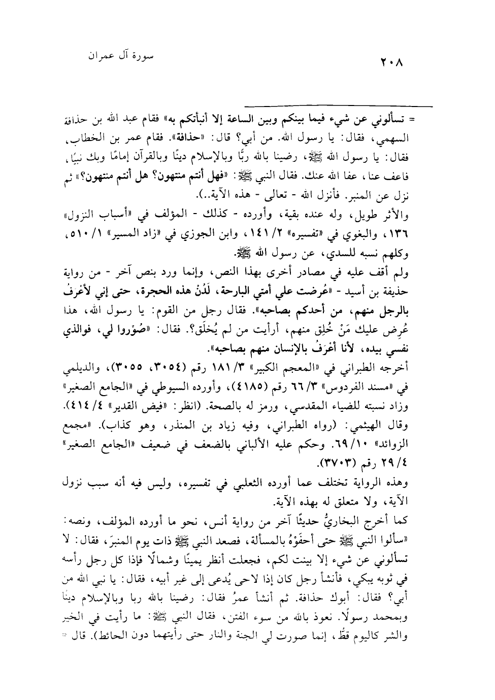 (¬3) في: "معاني القرآن" له 1/ 492. ولكن هذا القول، ليس مما تبناه الزجاج، وإنما أورده بصيغة (قيل). فقد ذكر أولا قول الكلبي -الذي ذكره المؤلف-، وصدره بقوله: (يروى في التفسير)، ثم ذكر هذا القول، قائلًا: (وقد قيل في التفسير ..) وذَكَره.