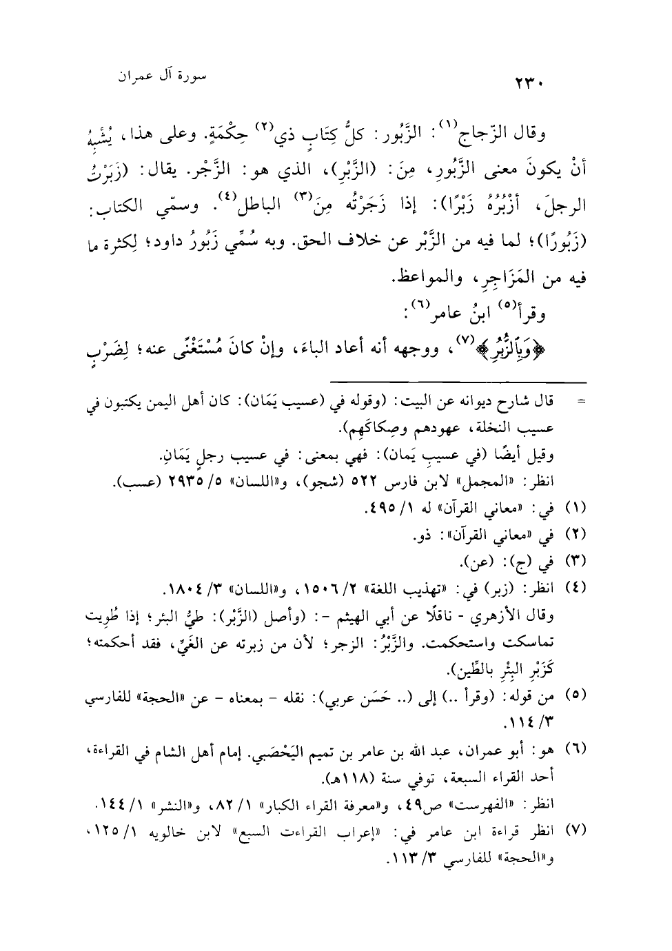 ومعنى (¬2) قوله: {جَاءُوا بِالْبَيِّنَاتِ} إلى آخرها؛ أي: بالمعجزات، وكتب المَزَاجِرِ، و {الْكِتَابِ} الهادي إلى الحق.