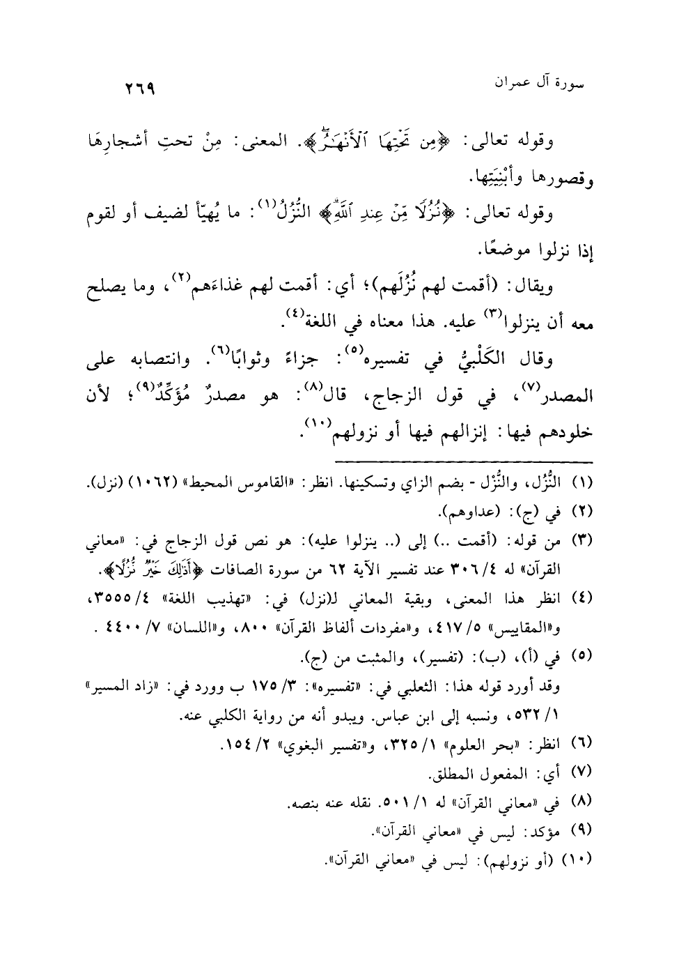 (¬1) قوله في: "تفسير الثعلبي" 3/ 1176، و"أسباب النزول" للمؤلف 143.