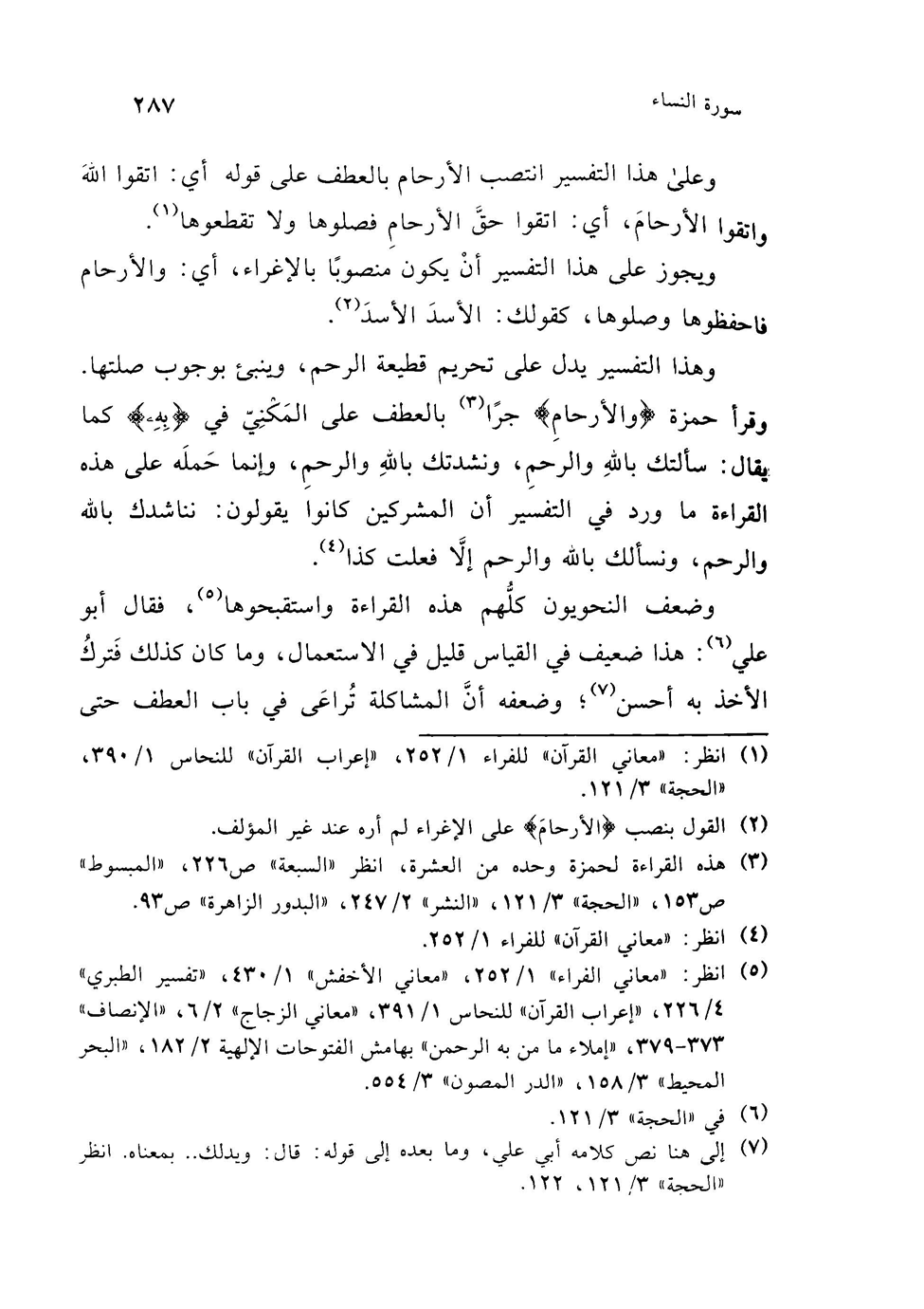 (¬5) هذا الكلام في "الحجة" 3/ 125، لكن دون نسبة إلى علي بن عيسى هذا، وعلي هذا لعله الرماني وقد تقدمت ترجمته.