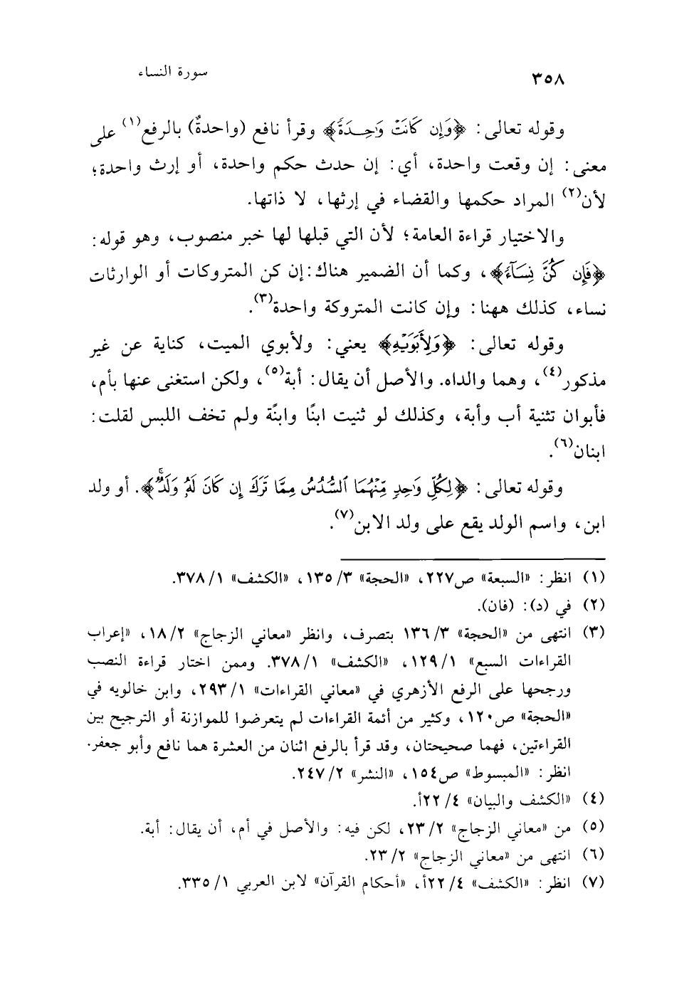 (¬3) انتهى من "معاني الزجاج" 2/ 23، وانظر "إعراب القرآن" للنحاس 1/ 400، "الكشف" 1/ 379.