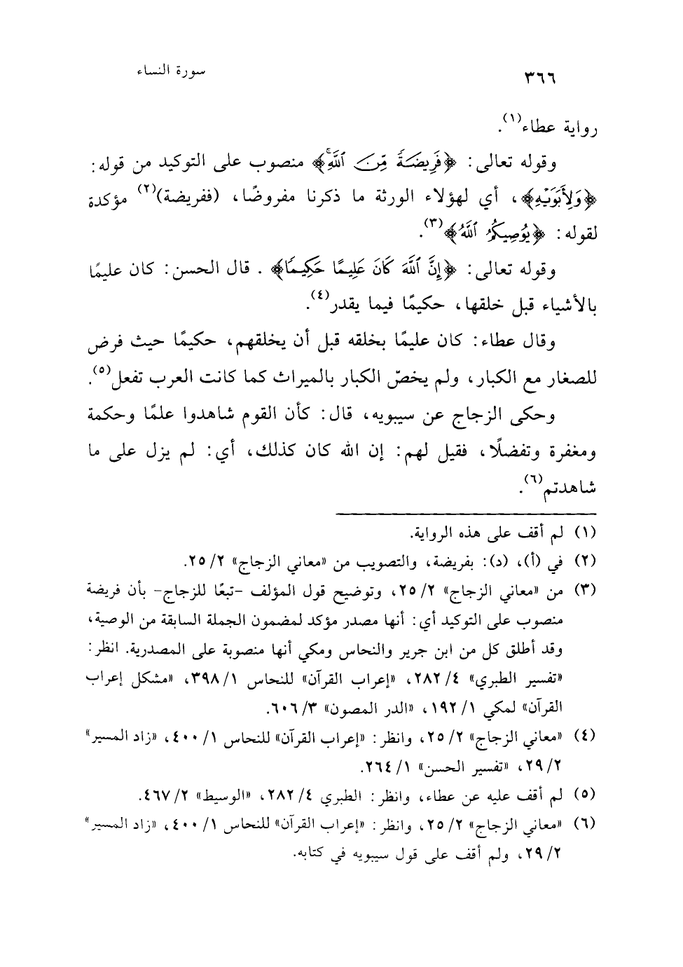 (¬3) "تهذيب اللغة" 4/ 3176 (كل)، ولم أر الأخفش في "معاني القرآن" تعرض لتفسير الكلالة.
