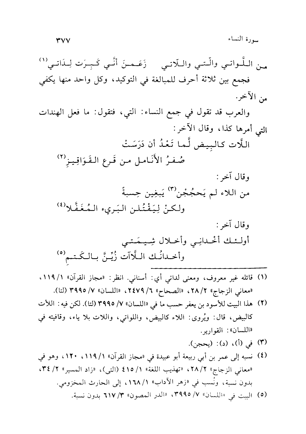 (¬4) "تفسير الطبري" 4/ 292، "الكشف والبيان" 4/ 24 ب.