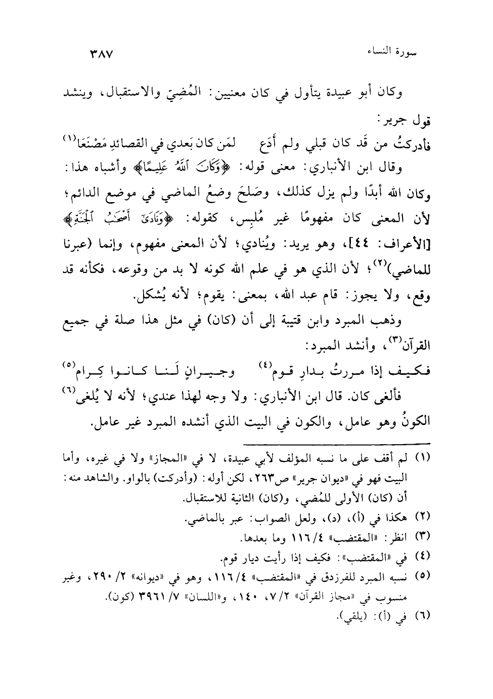 (¬8) انظر: "الكشف والبيان" 4/ 27 أ