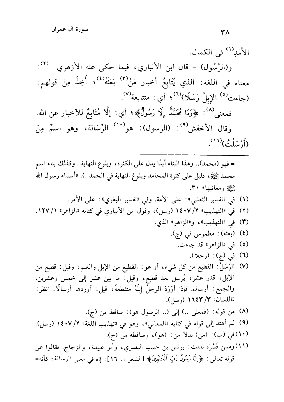 (¬2) من قوله: (ألف ..) إلى (.. نفي عنه القيام): نقله -بتصرف- عن "معاني القرآن" للزجاج 1/ 474. وانظر: "الصاحبي" 295 - 296.