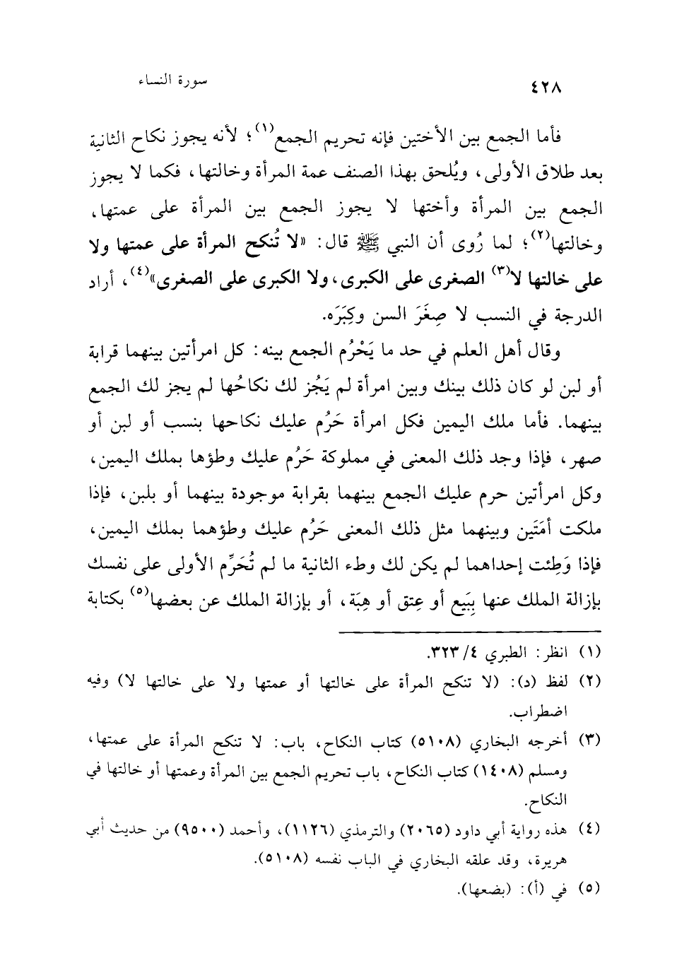 (¬3) انظر: "جمهرة اللغة" 2/ 543 - 544 (حصن)، والطبري 5/ 7، "تهذيب اللغة" 1/ 844 (حصن).
