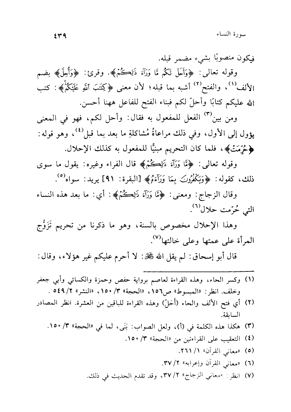 (¬9) انظر: "معاني القرآن" 2/ 38، "تهذيب اللغة" 2/ 1700 (سفح).