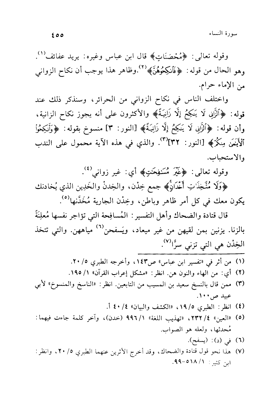 (¬5) انظر: الطبري 5/ 24، والثعلبي 4/ 40 أ.