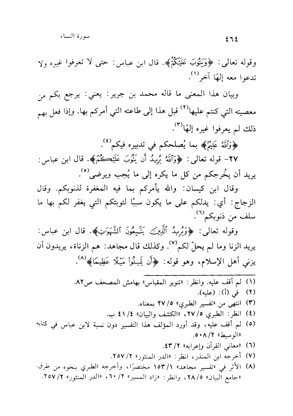 (¬6) انظر "معاني الزجاج" 2/ 44، "الكشف والبيان" 4/ 41 ب، 42 أ، "زاد المسير" 2/ 60.