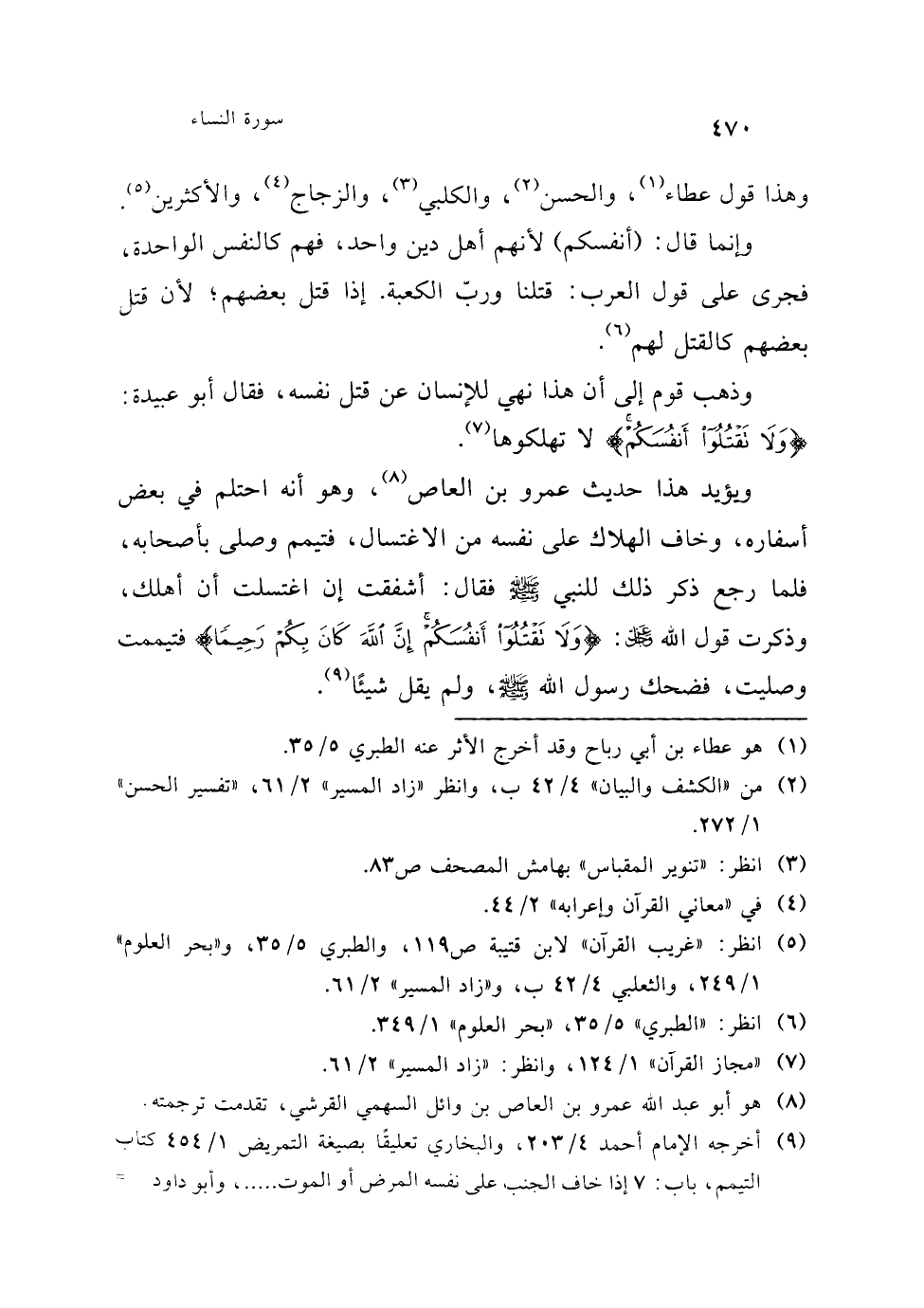 (¬5) هو أبو محمد أو أبو عبد الرحمن عبد الله بن عمرو بن العاص بن وائل السهمي القرشي صحابي فاضل، أسلم قبل أبيه وكان عالمًا بالقرآن والكتب المتقدمة ومن كتاب رسول الله - صلى الله عليه وسلم - ويعد من العبادلة الفقهاء، توفي -رحمه الله- سنة 65هـ.