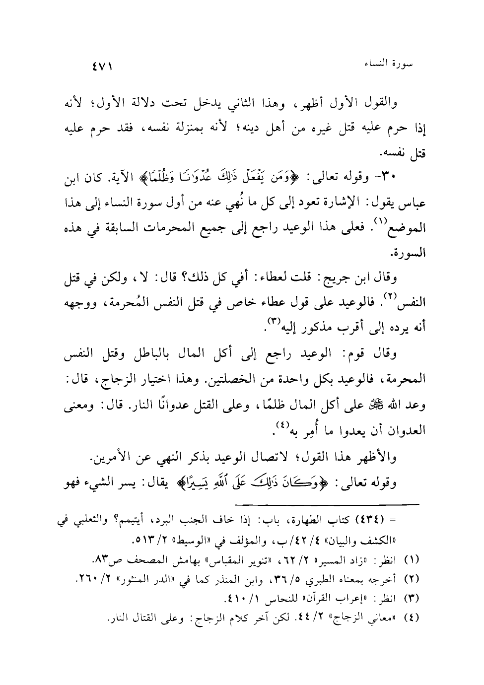 (¬1) أخرجه من أوله إلى قوله: فهو كبيرة الطبري 5/ 41. وقد ضعف هذا القول ابن الجوزي في "زاد المسير" 2/ 66.